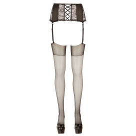 Melnas, garas zeķes ar mežģīņu maliņu. Paredzētas nēsāšanai bez zeķtura. Materiāls: 90% polimīds, 10..