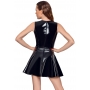 Ši nuostabi be rankovių suknelė iš Black Level yra pagaminta visiškai iš blizgaus juodo vinilo. Ji turi V formos nėrinių įdėklą, kuris elegantiškai pabrėžia žemą iškirptę. Suknelė yra prigludusi su platėjančiu sijonu ir turi patogų užtrauktuką nugaroje.
